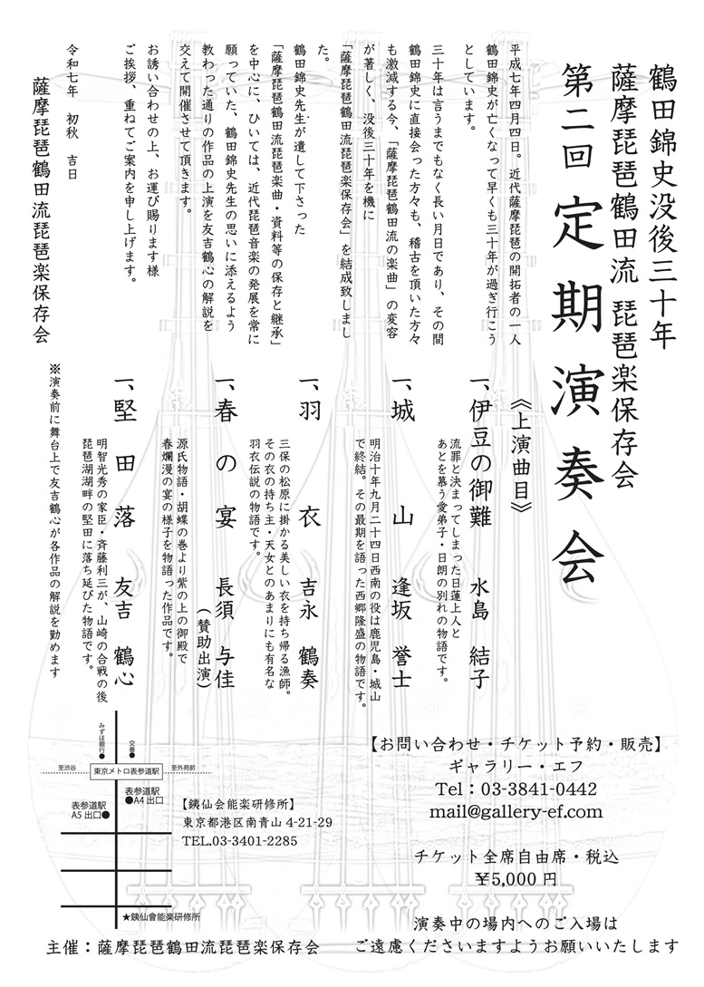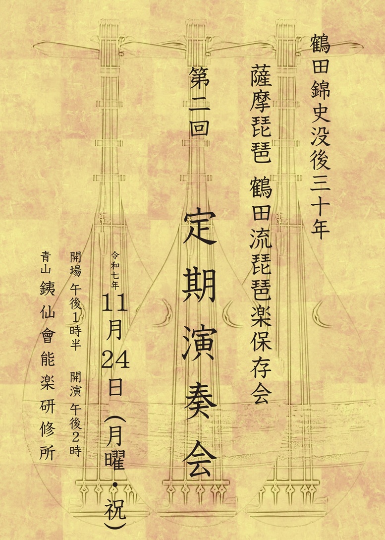 11/24(月)薩摩琵琶鶴田流琵琶楽保存会 第二回「定期演奏会」 銕仙会能楽研修所能舞台